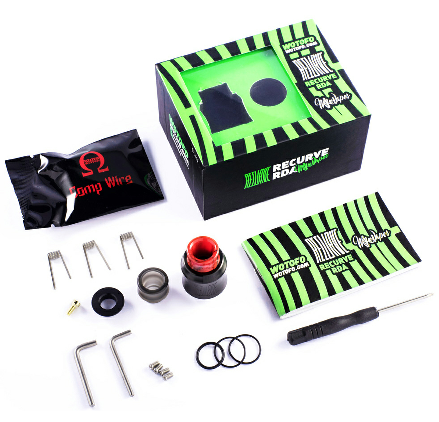 WotofoRecurve RDA 24mm By Wotofo And MikeVapes 1 x Wotofo Recurve RDA1 x Spare 810 Drip Tip1 x 510 Drip Tip Adapter1 x User Manual1 x Compwire Coils1 x J...